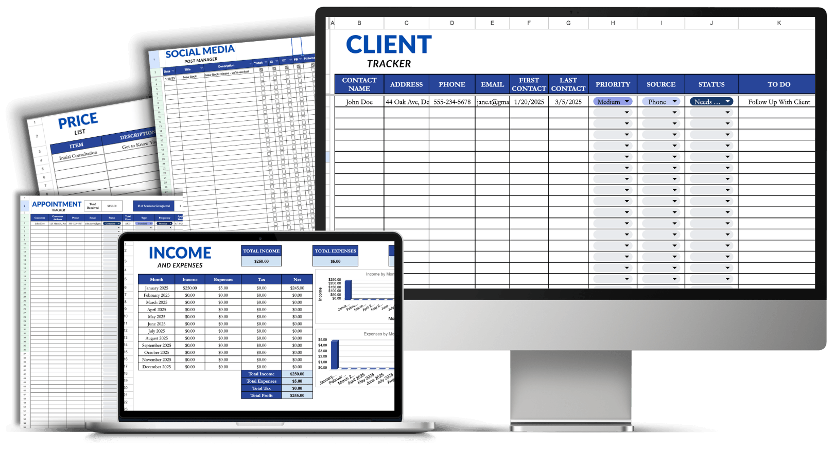 While recovering lost hours of admin work, tracking every dollar of your cash flow, and finally having a clear, professional system that stops $1,000+ clients from slipping through the cracks.