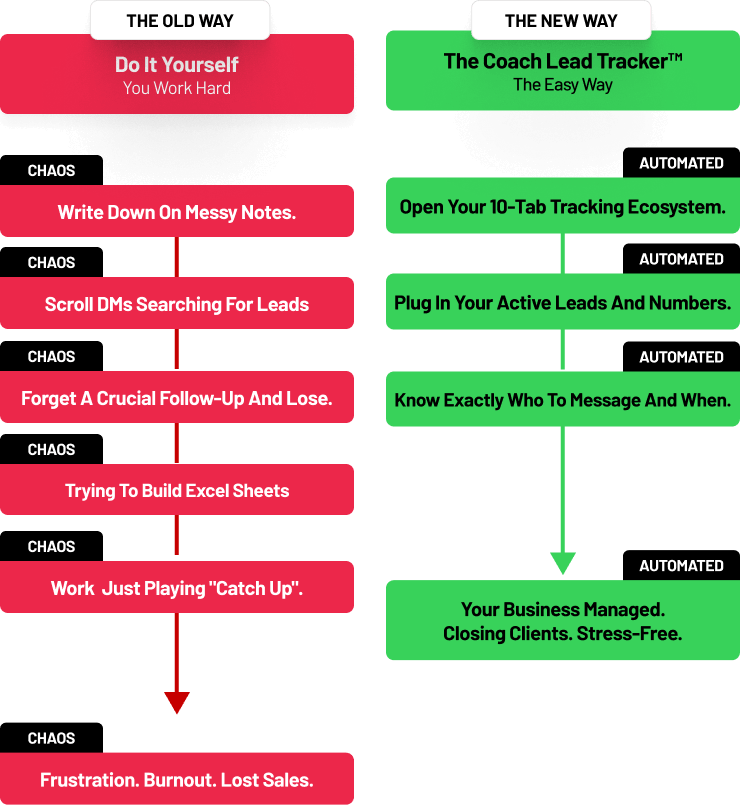 The Coach Lead Tracker™ is a complete, 10-tab, plug-and-play spreadsheet system for organizing your entire coaching business…